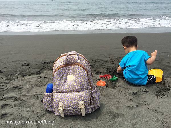背著它帶小湯去旗津玩沙,就這樣隨手放在沙地也沒關係喔!拍一拍就跟新的一樣了!