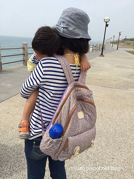 後背包最方便的地方是遇到小孩胡鬧需要安撫時,可以空出雙手抱小孩