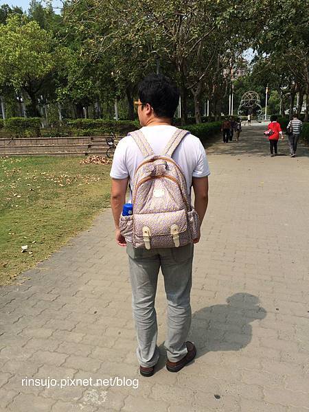 所以到附近的公園、商店買東西,我會牽著他慢慢走,這時側背的包包就不太理想