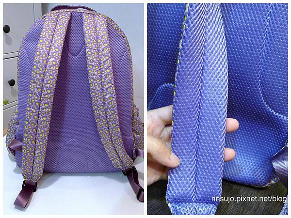 包包背部跟肩帶多了一層透氣網布,背起來的確比較舒適不悶熱