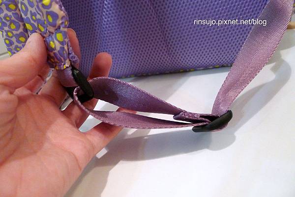 它還有一個貼心的小設計,把調整肩帶後多餘的織帶收進肩帶裏,不會多兩條帶子在外面晃來晃去