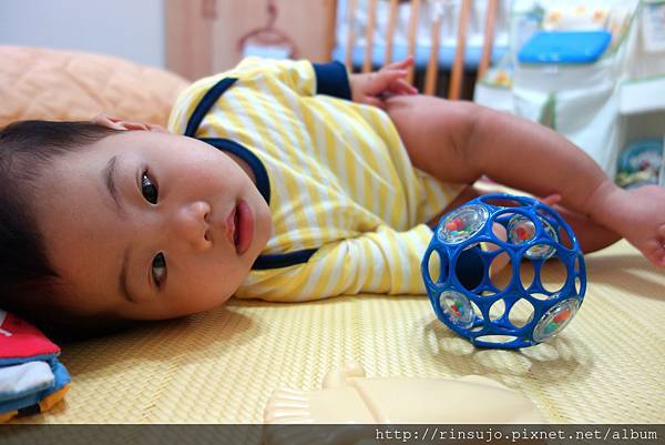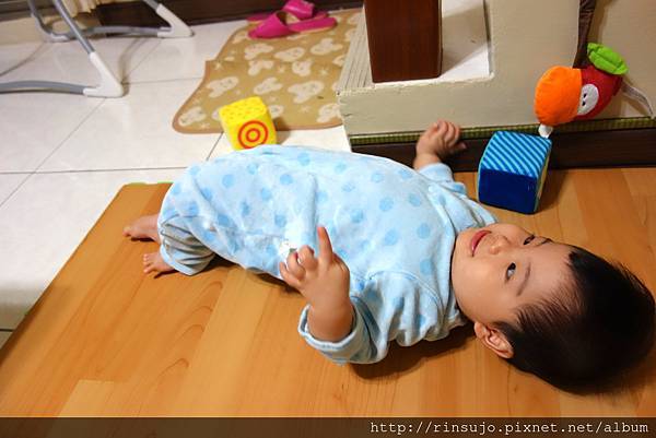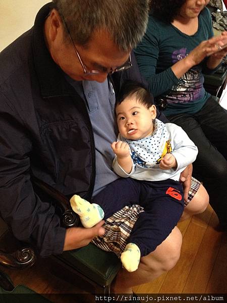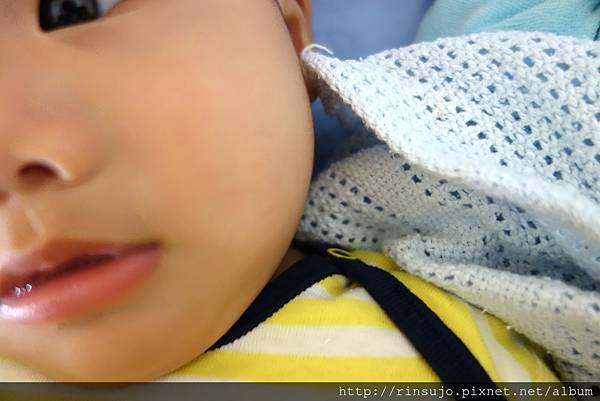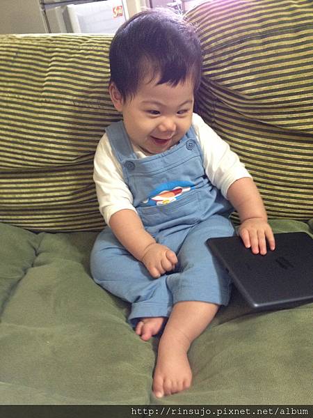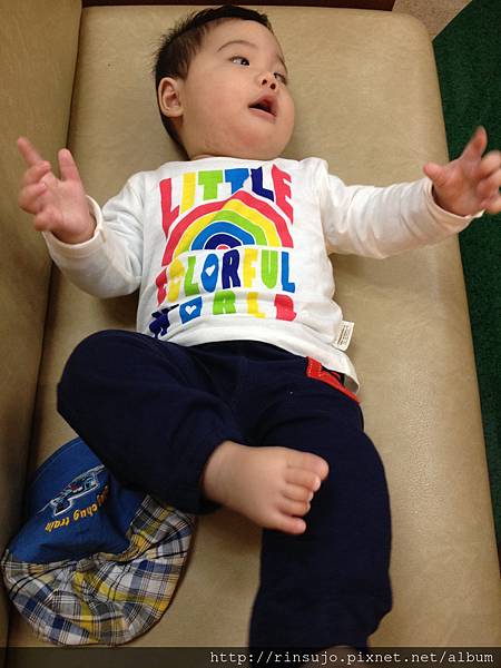 小湯7個多月時穿就比較剛好(圖片顯示:有東西吃,隨便人家抱都好)