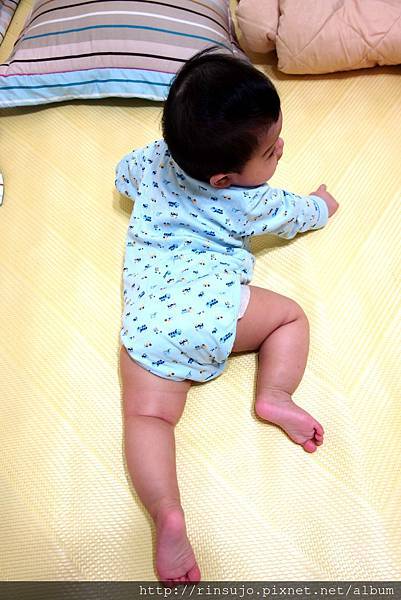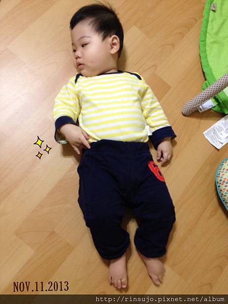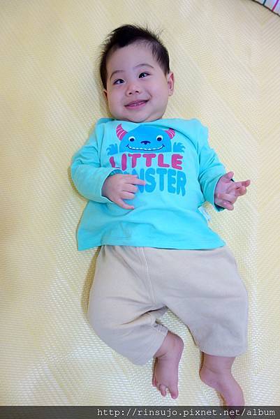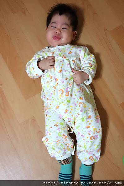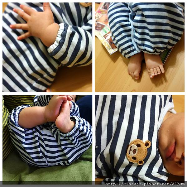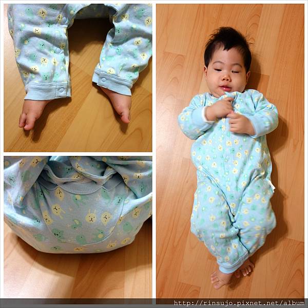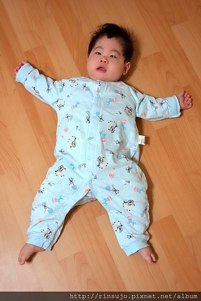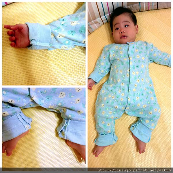 這款很早就買了,10月中小湯6個多月的時候穿起來非常大件,袖口跟褲管都折了好大一折