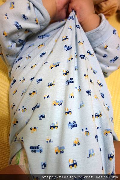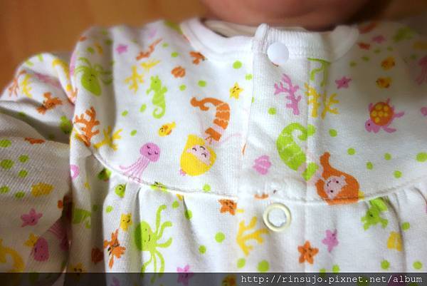 小湯6個月大時穿起來剛好合身,肩開釦設計很容易穿脫