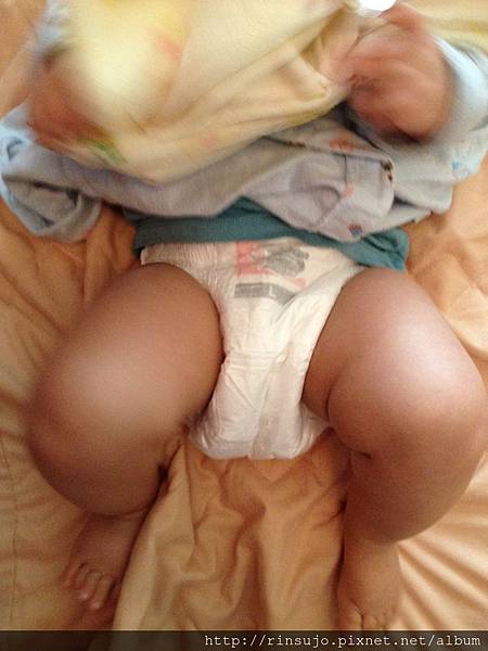 小湯怎麼都不肯乖乖讓我穿上尿布,穿一隻腳,另一隻腳就狂踢