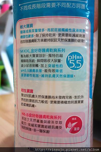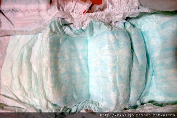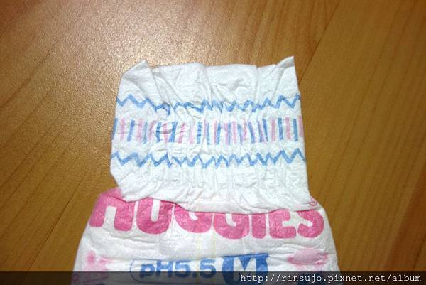 內層是微點狀導紋層,比白色幫寶適輕薄,但是,小湯用一天就紅屁股了