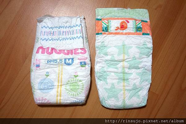 右邊是白色幫寶適L號,好奇的版型比較寬