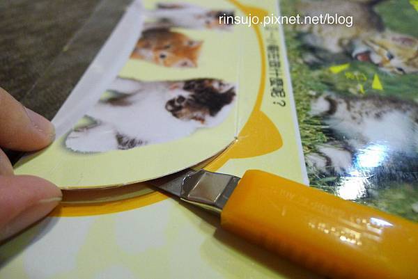 整頁黏好後,把邊邊多餘的膠帶剪掉,這時候,機關整個都被封住打不開