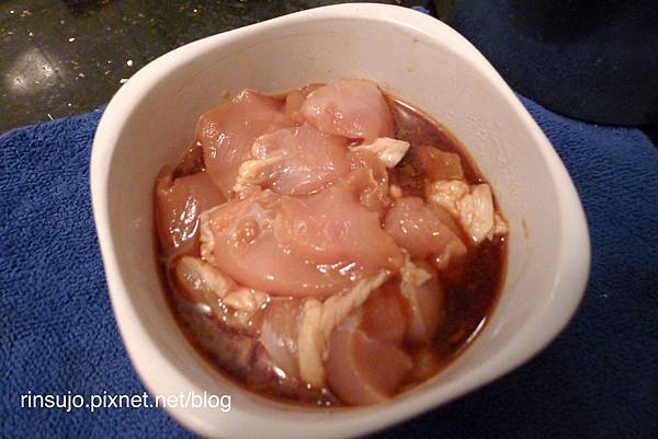(冷藏後的醃雞胸肉已經充份吸收醬汁,這樣吃起來才入味!)