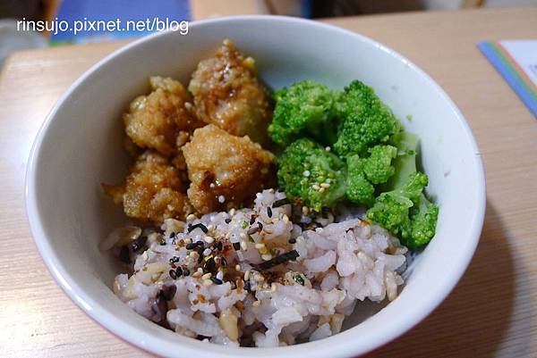 加上清燙花椰菜跟五穀飯,就是小湯最愛的炸雞特餐!