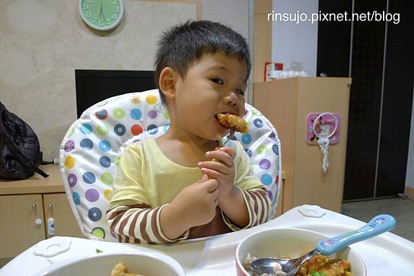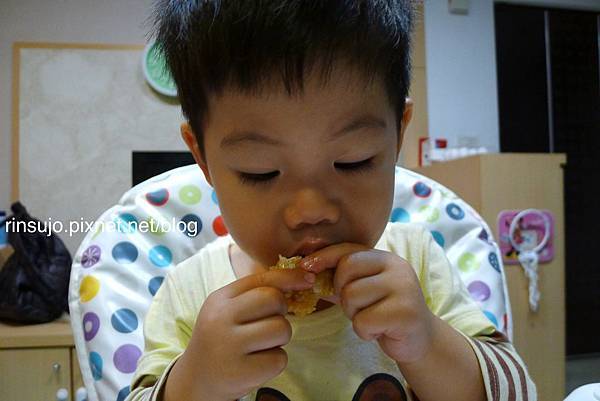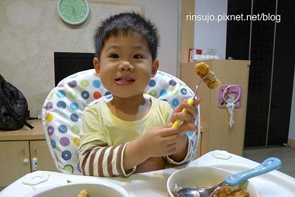 太好吃了,後來直接用手抓,似乎是吃到天間美味!(這小子還真好打發!)