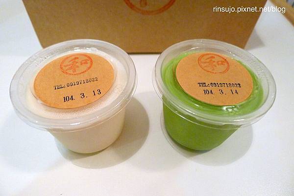 白色的是原味手工豆腐酪,綠色是抹茶口味