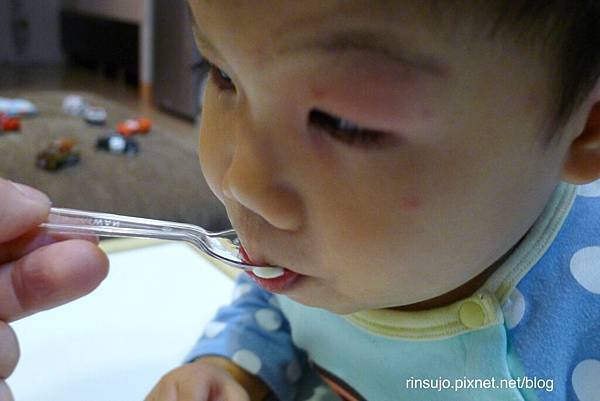 (抹茶有含咖啡因,我們並不打算太早讓小湯接觸這類食品,免得對身體造成負擔)