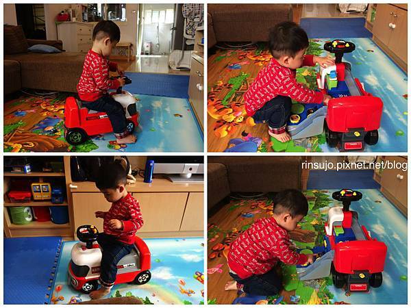 收到阿姨寄來的禮物--tomica兩用駕駛樂學步車,愛不釋手,玩一整天,媽媽樂得輕鬆,只要坐在旁邊陪玩,這小子就會自己耗體力,可以讓小小孩忙不停的玩具,就是好玩具!!!