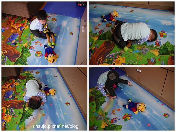 有模有樣耶!看來他都有偷偷觀察我平常的動作,然後學起來,現在也依樣畫葫蘆地照顧阿布跟巧虎,果然身教很重要,我要特別小心了!