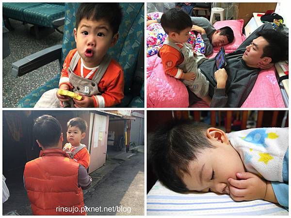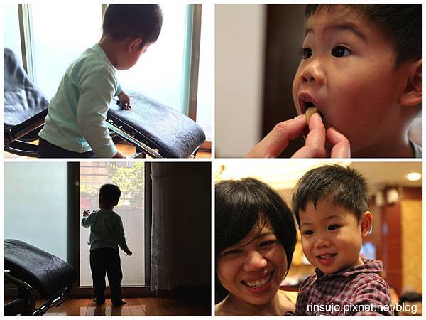 第一次被丟包在舅公家,完全沒想媽媽,玩到不想回來,我去接的時候還一直說「不要」,看來可以漸漸「離手」了!(媽媽歡呼!)晚上家族聚餐,跟德國的小表哥玩得很開心,被當人肉舉重器搬來搬去依舊笑咪咪,大家都說他可以準備去上幼稚園,真的嗎?孩子就這樣長大了嗎?