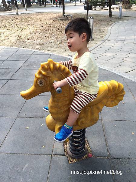 久違的公園!大半個月沒來,這小孩似乎長高了不少,小短腿已經踩得到搖搖馬的踏板,會主動說要「搖搖」,爬樓梯越來越順,也敢坐著溜滑梯,總是在不知不覺間發現他長大的蛛絲馬跡。
