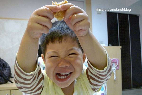 回到熟悉的環境,小傢伙睡到不想起床,在床上滾來滾去,最後是用點心把他叫醒,剛回高雄似乎不太習慣,小湯一直哭鬧說:「想嬤」,我告訴他要再等一陣子才能去找外婆,他還沒有時間的觀念,非得要「現在」「馬上」見到外婆,哭鬧兩天後才慢慢接受:「要再過很多很天才能坐火車去找外婆」的事實。大概是過年時太開心,小湯開始把「馬麻餵」掛嘴上,原本自己吃得很好的孩子,現在完全不自己動手,吃飯時間到就把湯匙遞給我:「馬麻餵」不餵就哭,「沒關係,你不想自己吃的話,就不要吃!」聽到這句話,茶包兔一邊哭一邊拿湯匙大口吃,還不時用哭腔說:「馬麻餵」果然孩子不能寵,過年期間小湯吃飯都有人餵食,嚐過甜頭後,覺得只要坐好就有東西吃是件很享受的事,根本就不想動手了,看來需要長期抗戰,重新找回喜歡自己吃飯的小湯!