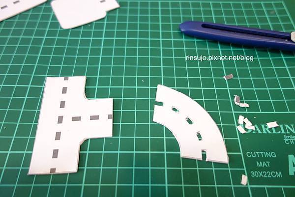 使用厚紙板是為了增加模板的硬度,除了方便描繪,也是為了保存,日後想擴充馬路時還可以再拿出來畫,就不用再重做模板了。