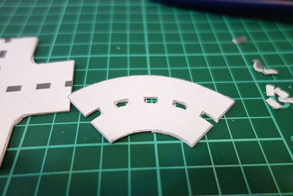 步驟1:將模板整張貼在厚紙板上,剪下道路模板