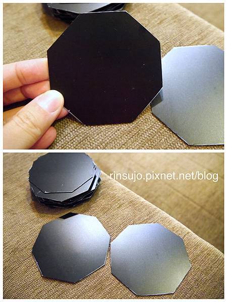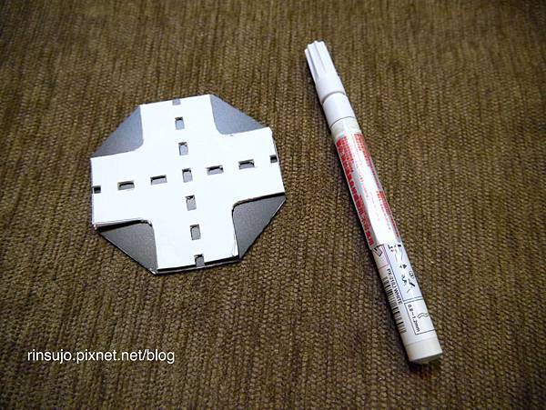 步驟3:用白色細字油漆筆將八角形模板描在軟磁鐵上再剪下