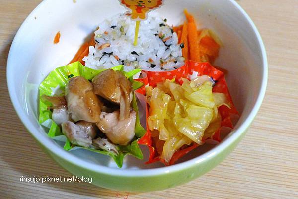 額外炒個青菜就可以上桌了,將雞腿肉去骨剪小塊再稍微裝飾一下,小湯很快就完食,超有成就感,而且這道三杯雞的湯汁很下飯,我光是拌湯汁就吃了兩碗白飯,可惜小湯對白飯有「潔癖」,只能在白飯上加海苔粉,如果拌入其他湯汁或配料就不肯吃,我只好獨享了!
