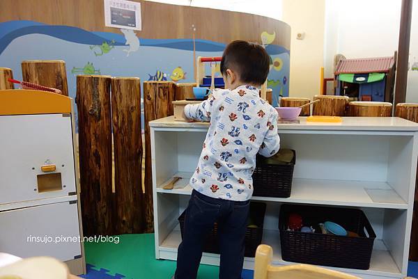 體能區旁有各式廚房用品跟小桌椅,身為流動攤販大廚的小湯怎麼可能錯過大展身手的好機會,當然馬上衝去開冰箱找食材、又切又煮又洗碗,同時還要幫客人點餐,異常忙碌。看著他認真的背影,脫離幼兒圓滾滾的體形,再次感嘆孩子長大了,也欣慰他找到自己人生未來努力的方向。