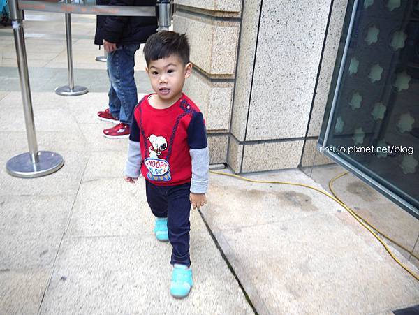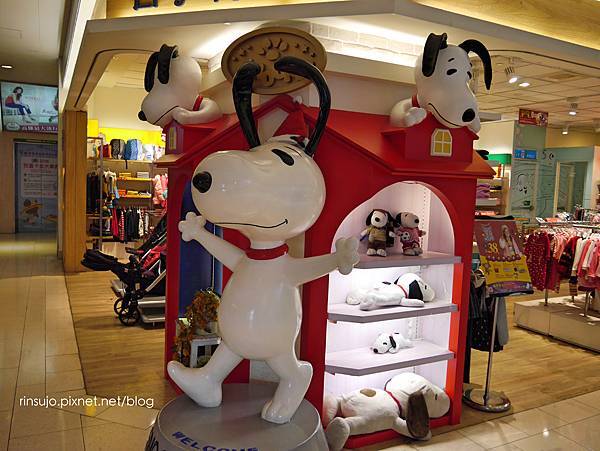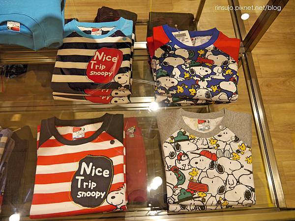 可愛的SNOOPY們暫時讓小湯忘記他剛剛的叛逆,我推他進專櫃時不再喊著「我不要買衣服!」,有好的開始!(媽媽鬆口氣)