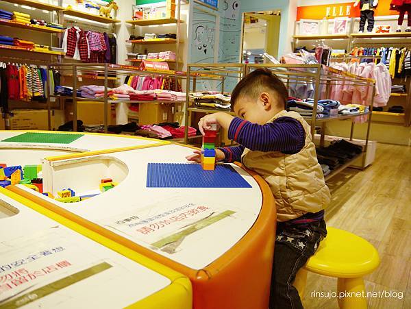 一進門就看到樂高桌,小湯馬上進入樂高的世界,再也聽不見媽媽說什麼,百事特貼心的遊戲區設計讓家長們可以放心購物,不用擔心小孩在旁邊吵鬧搗蛋,小湯從頭到尾都沒看我在做什麼,連我請他試穿衣服都沒反應,這應該算是我最愉快的購物經驗,因為少了一個小孩在旁邊問我「為什麼」。