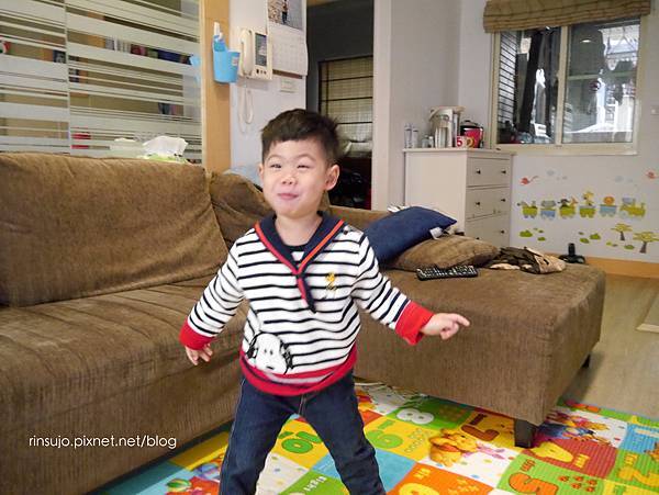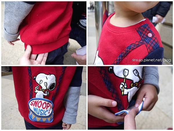 重點是這孩子似乎很滿意,一直說:「我穿SNOOPY耶!」還不時表演從口袋變出車車的魔術,看來這次真的買對衣服了!但讓人頭暈的是,小湯太喜歡這件衣服,即使出太陽也吵著要穿,即使它是薄針織,也有一定的保暖度,才走到中庭就熱得滿身汗,最後還是乖乖回家換衣服。