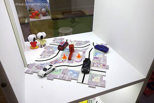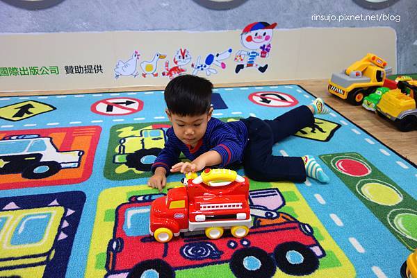 哺乳室外就是許多小男生沈迷的各式車子跟火車的遊戲區,小湯在這裏玩了又玩,甚至還玩到躺在地毯上非常舒適,完全當做自己家,就算後來我們到別的區域探險,他也都會再回到這裏摸一下車子,最後更是使出大絕招:「我不要回家!我還要玩耶!」好不容易帶回家後,在路上,小湯還念念不忘:「我們下次再來玩車車好不好?」這裏榮登小湯心中最好玩的親子館!(明明家裏也有一堆車,還是少了地毯不好玩?!那我得來找找類似的地毯!)