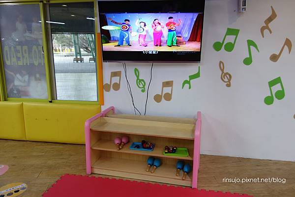 電視不停播放歌唱影片,不少孩子在這裏又唱又跳,甚至還會一邊跳一邊搖沙鈴,可惜小湯完全沒興趣,他的肢體律動很弱,是我一直想幫他加強但他很排斥的項目,後來我就看開了,反正媽媽也不是唱歌跳舞的料,等他上學後應該多少會跟著老師同學唱唱跳跳,等他有興趣再來培養。