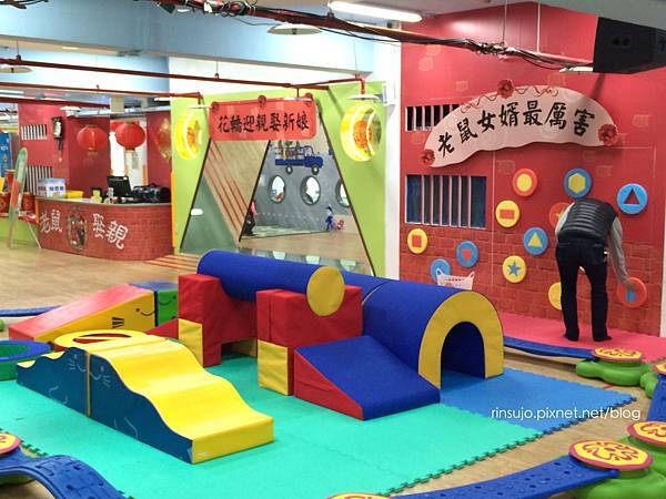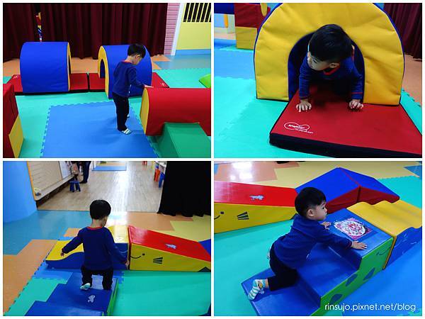 一進門就可以看到2歲以下嬰幼兒專屬的遊戲區,小湯原本直衝這裏,被我擋下來:「你已經不能進去這裏喔!這是更小的小朋友玩的地方!」「為什麼?我想玩耶!」「因為你長大了啊,這裏是還不太會走路的小朋友玩的地方,如果你不注意的話,很容易撞到小baby,所以你要去其他地方玩喔!」一邊講一邊感傷,原本這孩子也是屬於這個區域的,不知不覺居然已經是「小童」不是「baby」了,媽媽的心情很複雜。