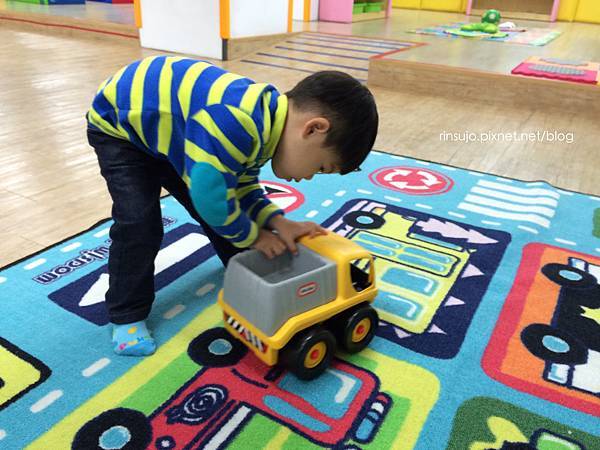 媽媽的用心,現在小湯還不瞭解,他的世界只有吃喝玩樂,媽媽除了要關心國家大事還要想辦法消耗小小孩過剩的精力,他晚上順利躺平後我才能繼續追連續劇!每次回台北最大的好處除了有人分擔顧小孩的工作,白天還有免費的親子館可以帶孩子去跑跳,這回我帶小湯去的是一直很難預約的中山親子館,小湯在裏面玩到不肯回家,一直摸著裏面各式小汽車玩到最後一刻才罷手,這應該是目前為止最合小車迷心意的親子館了。
