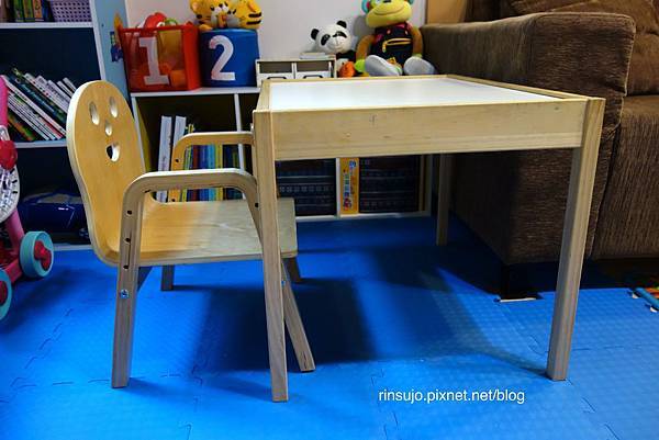 小湯1歲5個月的時候,我們覺得該買桌子讓他好好坐著畫畫跟看書,看了很多幼兒專用的桌椅,號稱可以隨孩子成長做調整,看過實品後覺得很有質感,放在家裏賞心悅目,可是價錢不可愛,小胖辛苦工作的血汗錢要花在刀口上,雖然這些桌椅號稱可以用到小學甚至一輩子,但也要孩子肯好好使用跟愛惜,不然沒幾年就報銷了。我跟小胖覺得目前用的小桌椅只是過渡時期的工具,與其買貴森森的幼兒桌椅組再叮嚀孩子「好好愛惜」,不如買平價的桌椅讓小湯隨意使用,這時期的孩子破壞力強,需要時間慢慢學著珍惜物品,在他們學會前,不用擔心孩子損傷桌椅讓爸媽心痛,等小湯上學後,再來買適合的學習書桌。