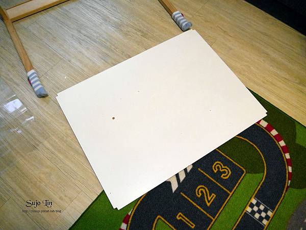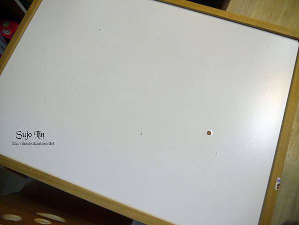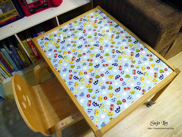 桌子左右兩邊因為布太小,露出原本的白色底,但我覺得無所謂,反正不明顯,而且小湯超愛新桌面,孩子喜歡最重要!