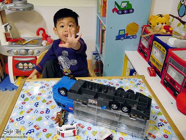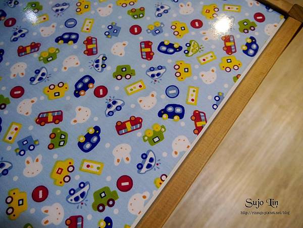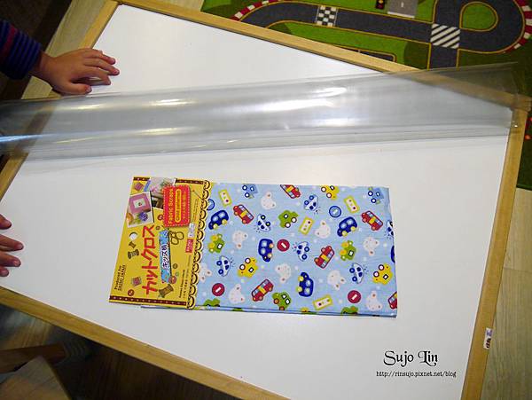 防水布很滑,小車迷很愛讓小車在上面「溜冰」滑行,平常在上面畫畫也很好清理,溼紙巾輕輕擦就乾淨,比原來的桌面好清理,就算用久髒了,還可以再更換自己喜歡的背景跟桌布,讓桌子的使用年限更長,除了環保愛地球,省下來的經費可以多買幾台小汽車或繪本,花點巧思,一舉數得!