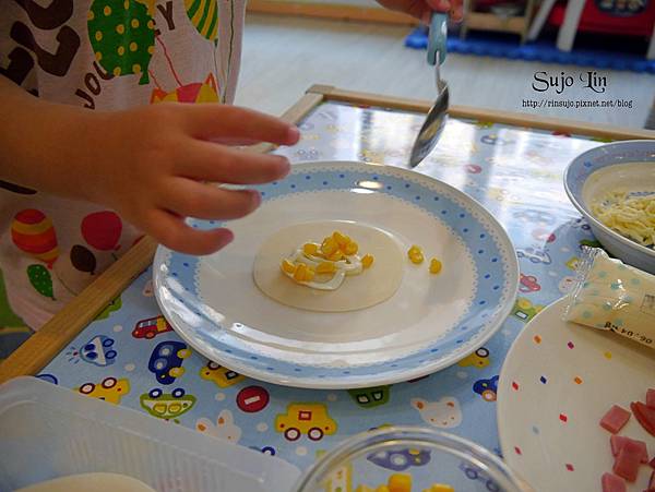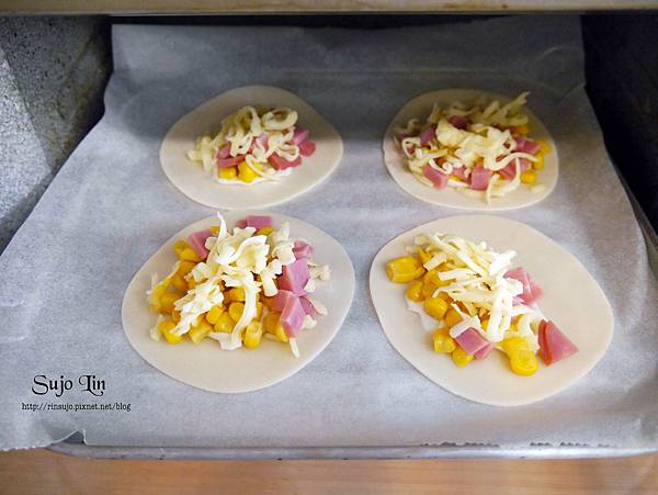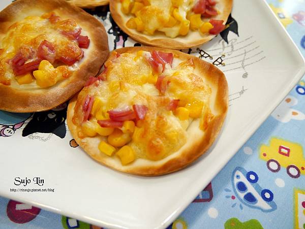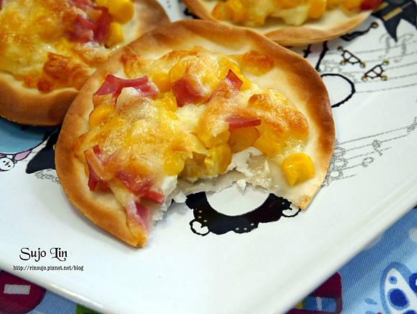 烤過的美乃滋有種特殊的甜味,我覺得用它當做基底會很受小朋友喜愛,上面的玉米跟火腿可以任意換成炒過的蔬菜之類的,小披薩就能變成營養午餐。