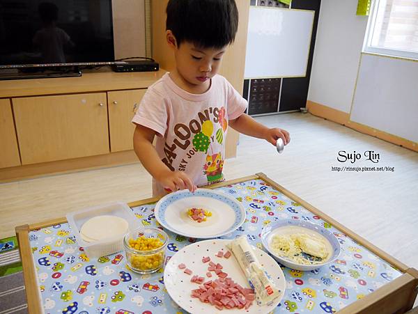 看他認真的臉跟熟練的動作,午餐就交給你囉,媽媽只要坐在旁邊口頭指導,難得輕鬆。