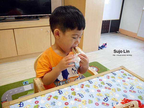 小湯吃得很陶醉,大概是覺得自己親手做的特別好吃,自己一個人掃光一盤,再喝杯牛奶就是他的午餐了。(我知道很偷懶,但夏天嘛,偶爾讓媽媽輕鬆一下)