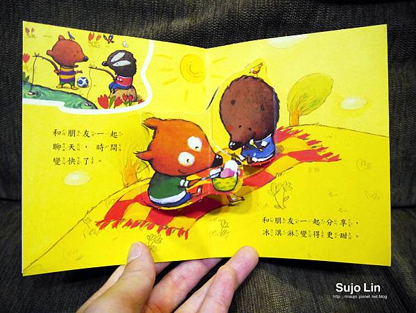 這次的麥當勞的立體書我覺得無論是內容或題材都選得沒有去年的好,讀起來有點單調乏味,甚至有些內容濃縮到失去原故事的涵義,我有點失望,小湯也不太捧場,雖然帶出門方便,還是「完整版」的繪本讀起來舒服。