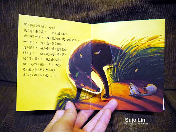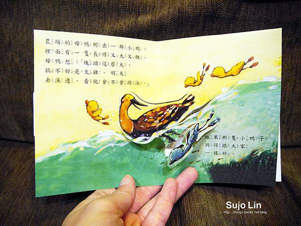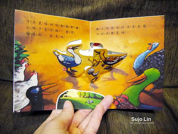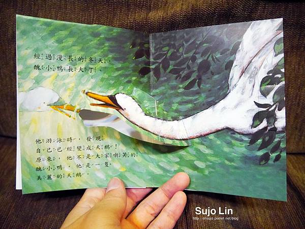 所以,這個超簡易版醜小鴨因為太容易造成誤解,我都是利用它的圖畫,搭配我知道的原文故事來唸給小湯聽。