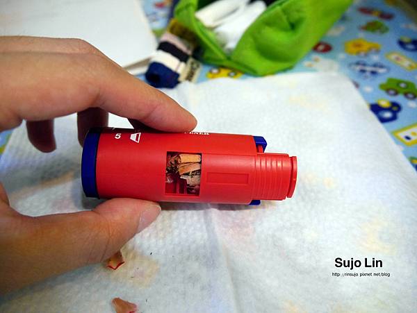 怕鉛筆削太尖傷到小湯,我將削筆器轉到3,削出來的鉛筆尖度非常微妙,我一直在讚嘆它怎麼辦到的!?為何我以前沒有這麼神奇的削筆器呢?好適合給小朋友拿來削色鉛筆,就不會因為削太尖戳破紙張或太用力折斷筆尖。