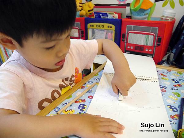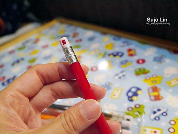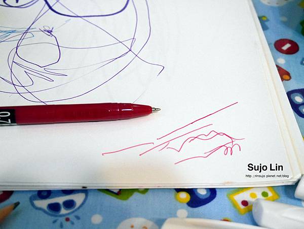 第一次使用鉛筆橡皮擦的小湯非常興奮,有模有樣地拿筆隨意畫,再用橡皮擦擦掉,還沒真的去上課,就已經陣亡一個小橡皮擦!(也太快!)