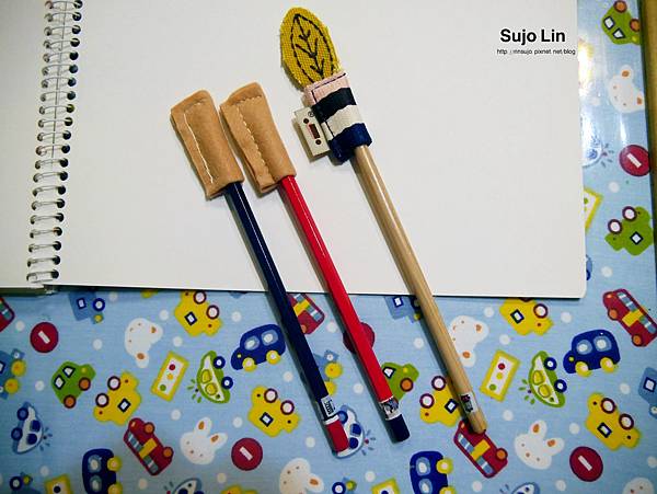 新的鉛筆太高,放不進小筆袋 ,所以孩子睡後,媽媽認真在做手工,用不織布縫筆套,保護筆尖跟孩子的小手。