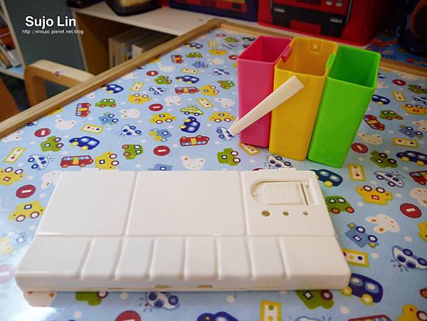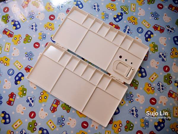 基本款調色盤是老師指定要買的,如果孩子不小心擠太多顏料,蓋上後就不怕顏料乾掉,但我覺得對小小孩來說,梅花型的調色盤比較容易使用,所以後來我又補買一個梅花型的調色盤,當小湯在擠顏料時告訴他要慢慢擠,目前是還沒有擠太多用不完的情況。