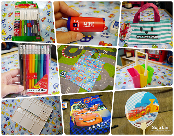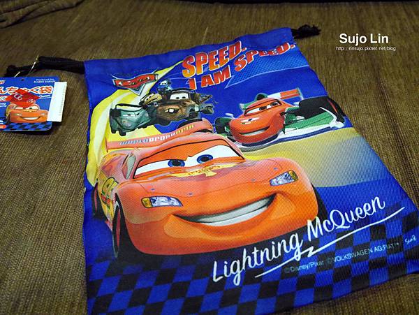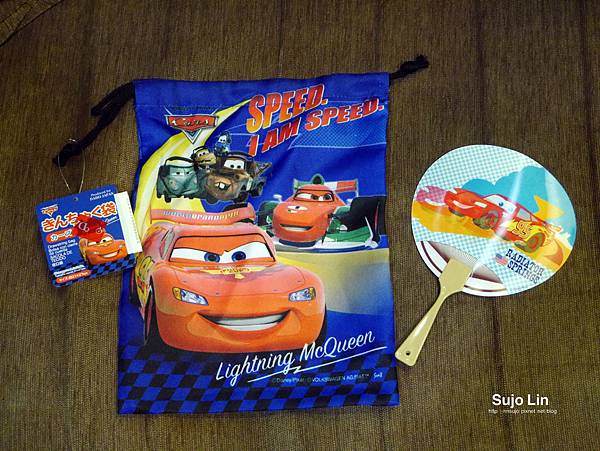 小車迷的最愛:汽車總動員的麥坤束口袋跟小扇子!當我們在大創賣場看到它們時,二話不說就立刻帶回家,後來證明我們如此衝動的購物行為是正確的,因為我沒在賣場上看過它們第二次。(在大創看到喜歡的東西要先買再說,猶豫一下就賣光了)