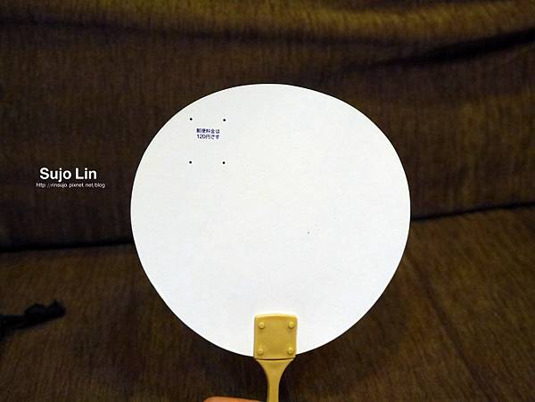 轉動扇子可以看到3D的麥坤,長約20cm,大小適合小小孩,背面空白無圖,包裝袋上說它可以貼日幣120元的郵票寄出,在台灣不知能不能?(但小車迷應該不捨得)