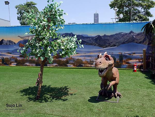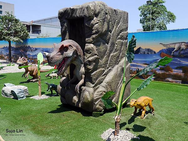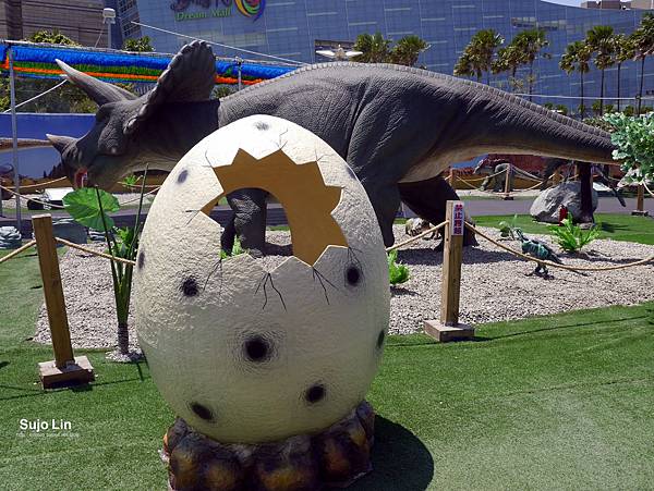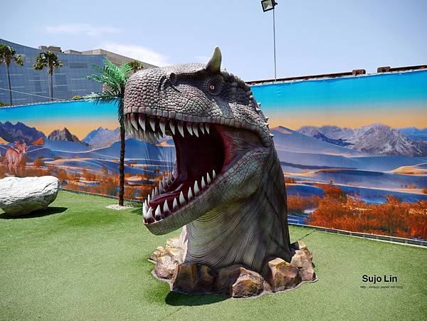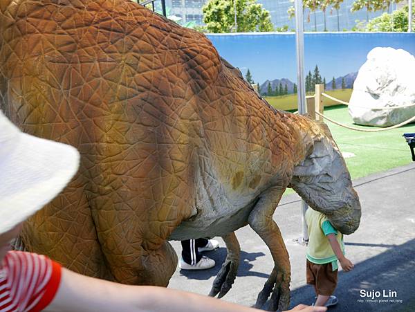 還有這個可以假裝被恐龍咬的拍照熱門景點(?)也讓小湯嚇破膽,「馬麻,他被咬了啦!我不敢看!」忍住笑的同時,我只能盡力安撫他的情緒,告訴他這只是假裝的,恐龍並不會動啊!