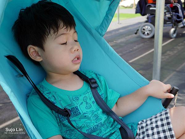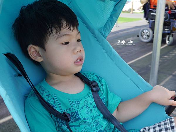 我們10點半左右到凱旋捷運站,才發現原來夢時代的接駁專車要11點才發車,頂著大太陽,我正在煩惱該怎麼辦時,小湯突然說要坐輕軌,於是,我們搭了一站輕軌後走到展場。頂著大太陽,短短幾分鐘的路程變得好遙遠,我非常慶幸我有帶推車,可以快速移動,不然牽著一個慢慢走的小蝸牛,還沒走到目的地就烤熟了吧!